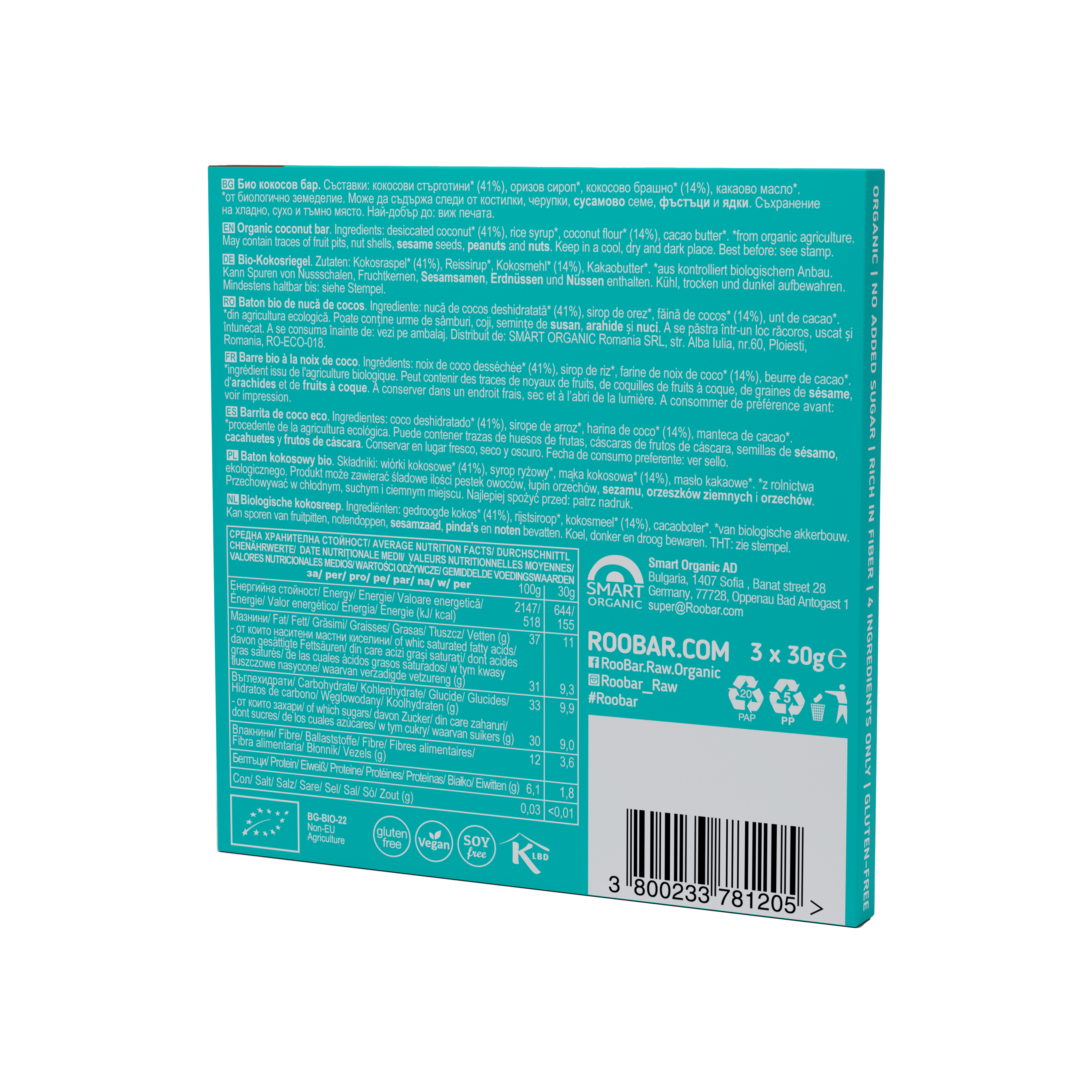 Roobar baton kokosowy bez cukru 3x30g BIO